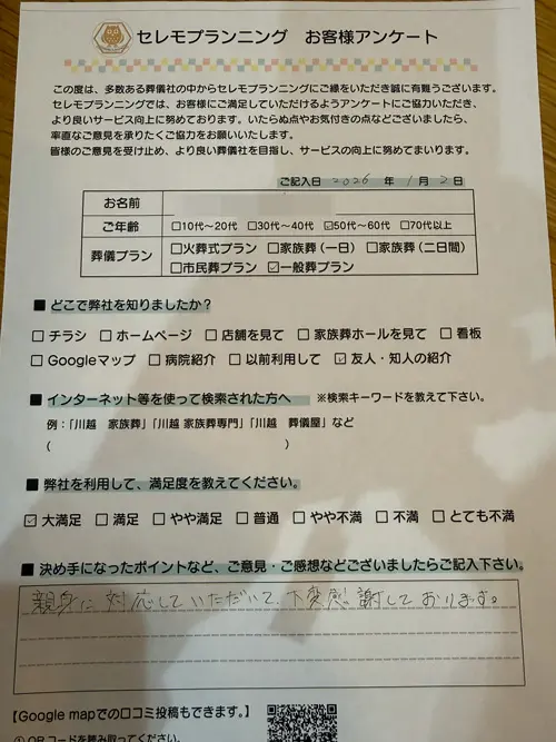 「親身に」と言っていただけて、担当させていただいた者として、これほど励みになるお言葉はございません。大切な節目をお手伝いさせていただくなかで、お客様の不安が少しでも軽くなればという思いでしたので、そうおっしゃっていただけてホッと胸をなでおろしております。