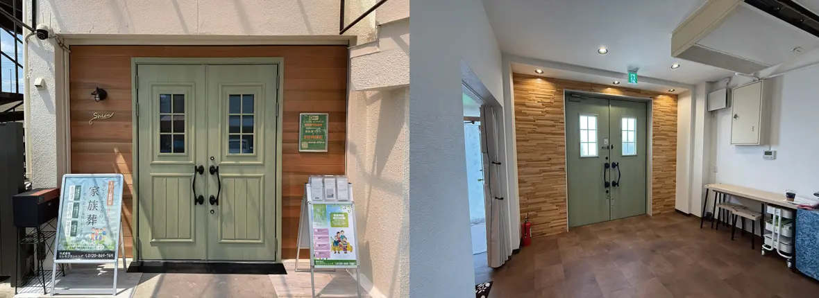 東武東上線「霞ヶ関駅北口」駅前に、1日1組貸切の15名以内で家族葬が行える当社の家族葬専用式場。